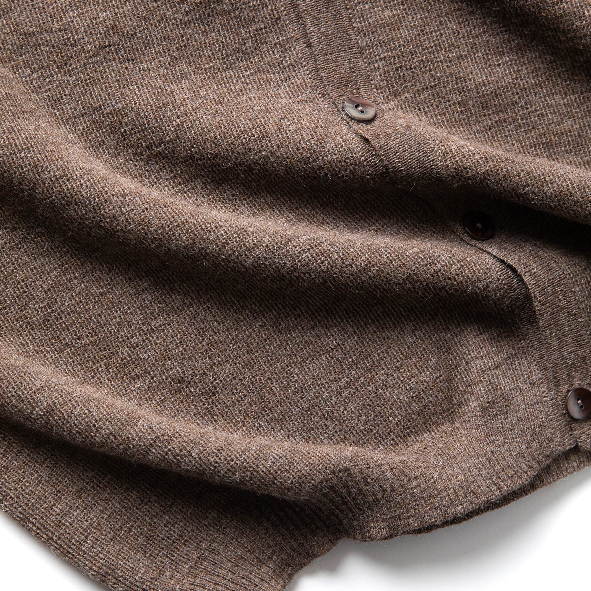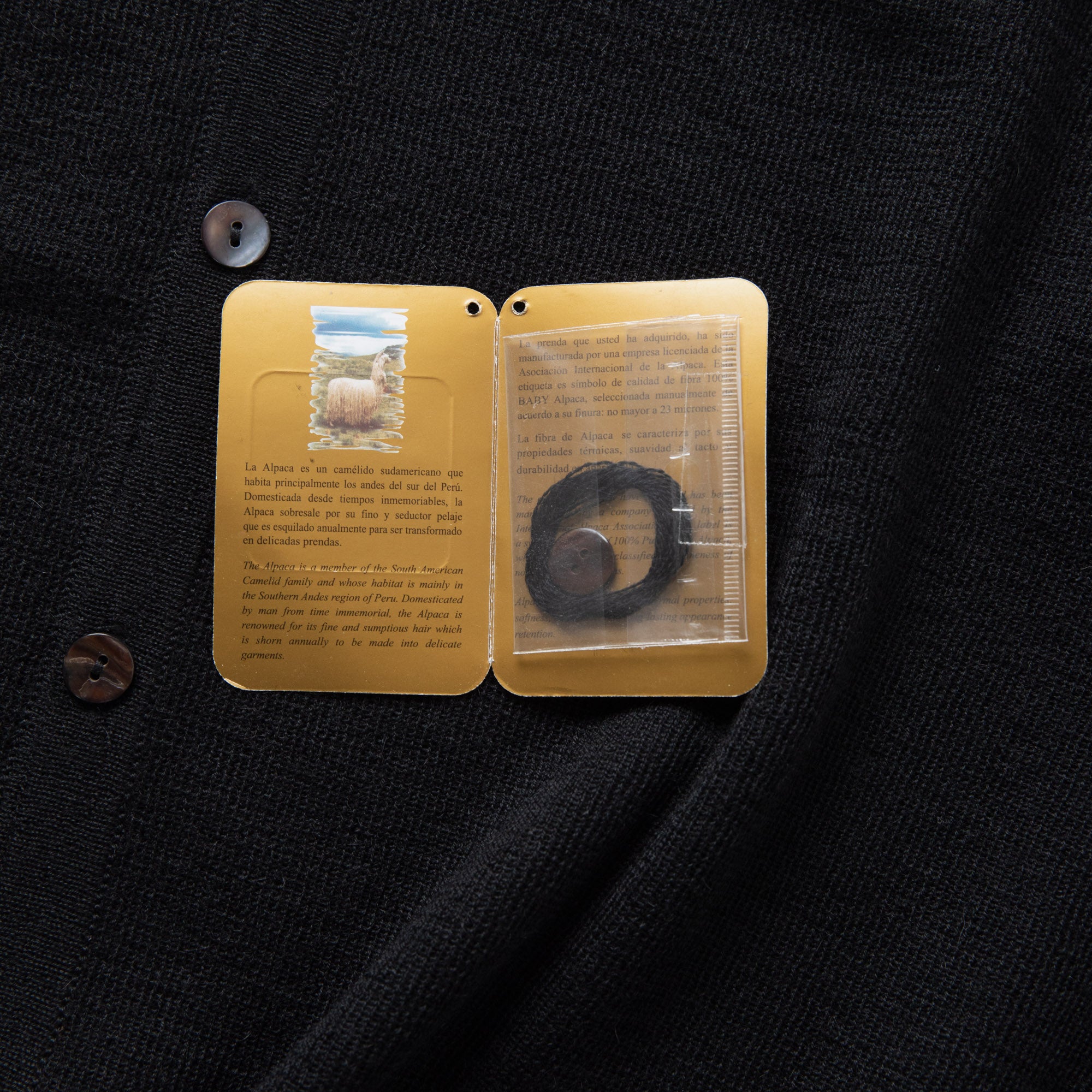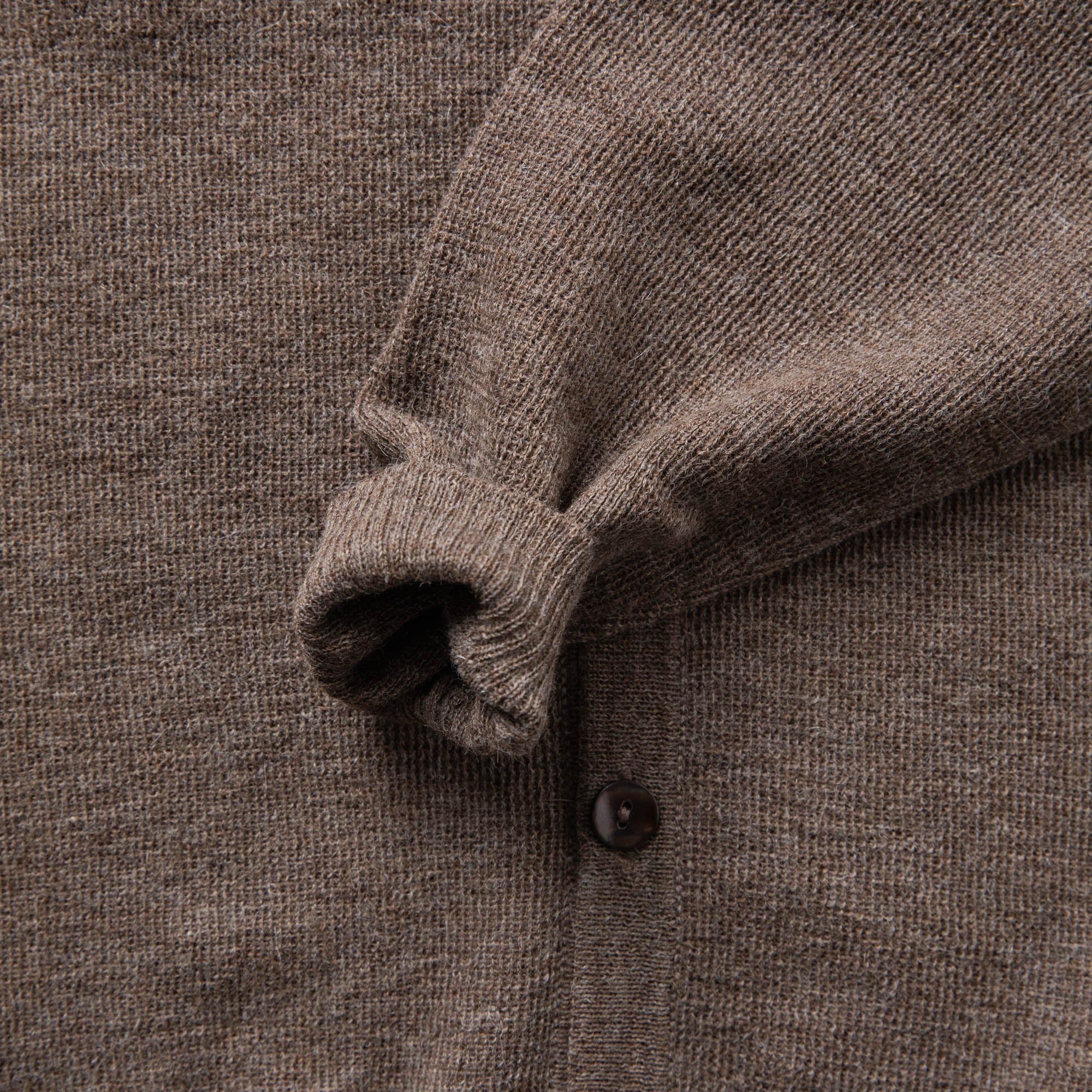 上品な光沢を放つシェルボタンが控えめに存在感を添え、春・秋・冬の3シーズンで幅広く活躍します。シンプルながら素材の良さが際立つ一着です。「ベビーアルパカ」とは生後3ヶ月以内のアルパカから、生涯でたった一度だけ採取できる奇跡の繊維。