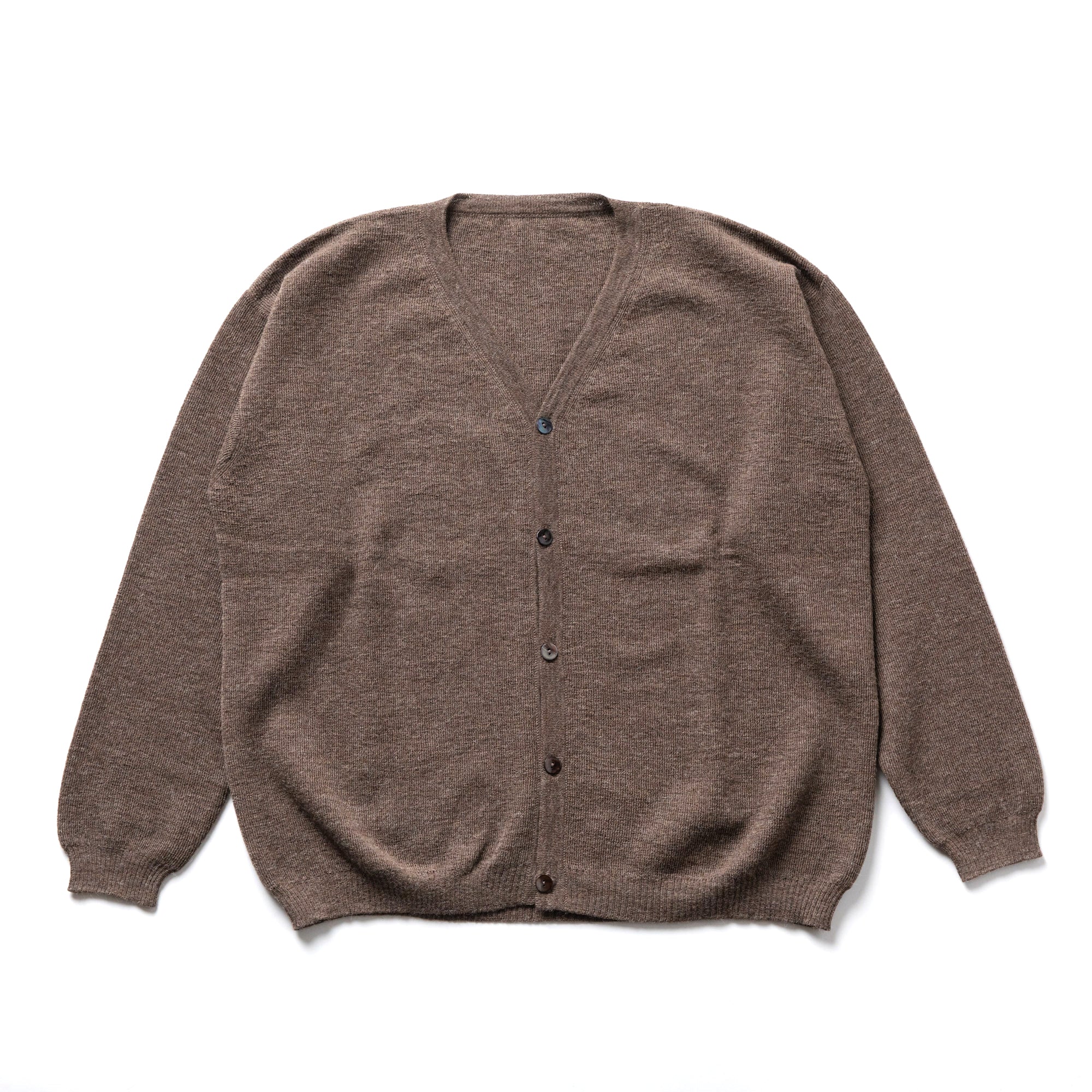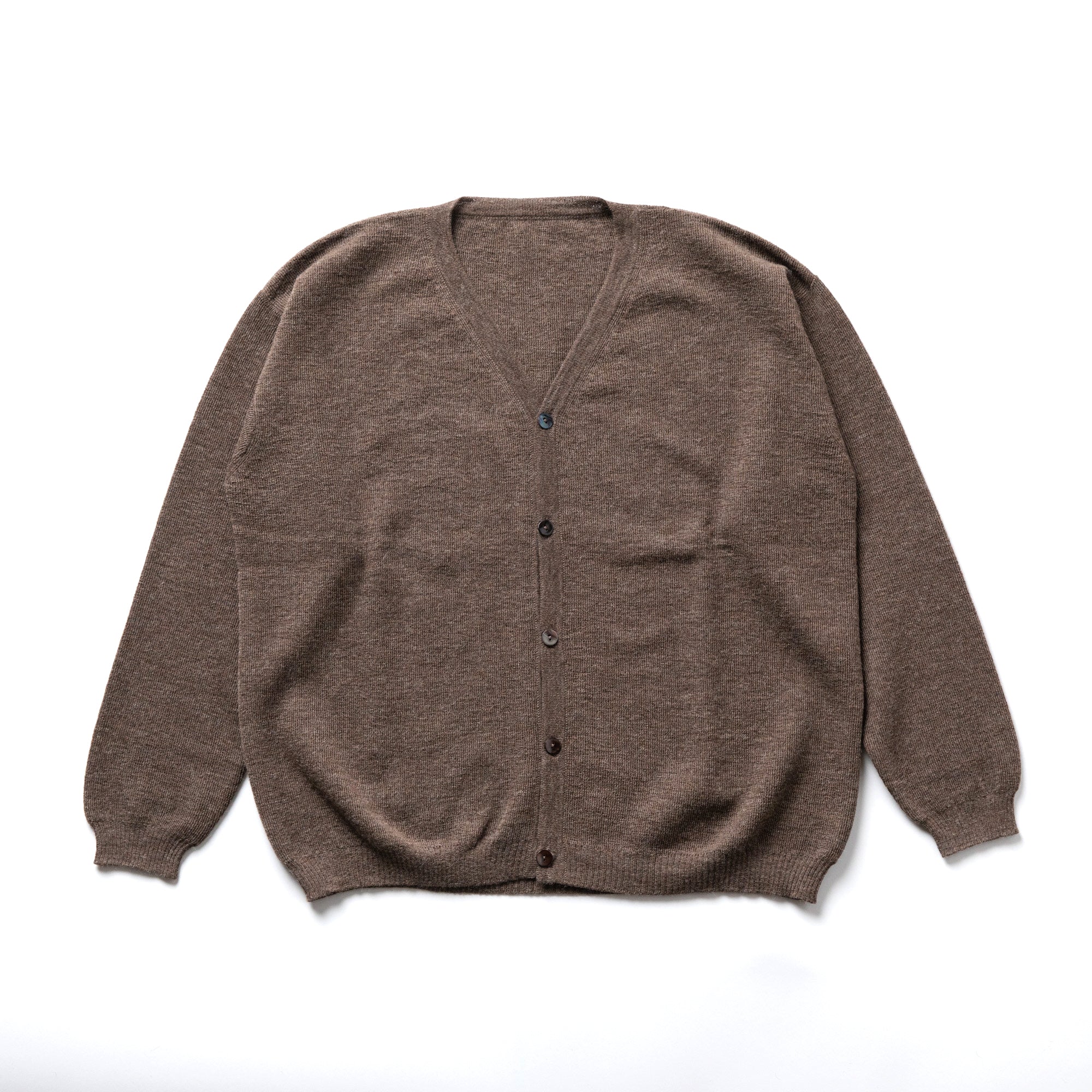 上質なベビーアルパカを使用した薄手のカーディガン。ベビーアルパカならではの滑らかな肌触りと、軽くて暖かい着心地が魅力。素材の特性を活かし「汎用性」を重視して微調整を重ね、適度なボリュームでインナーとしても機能する絶妙なサイズバランスに仕上げました。アウターを羽織っても邪魔にならず、ミドルレイヤーとしても最適です。